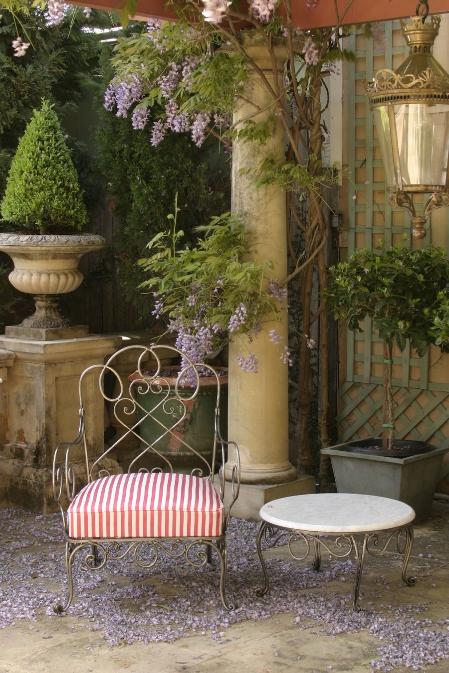 Round Steel Table Marble Glass Outdoor French Provincial Le Forge